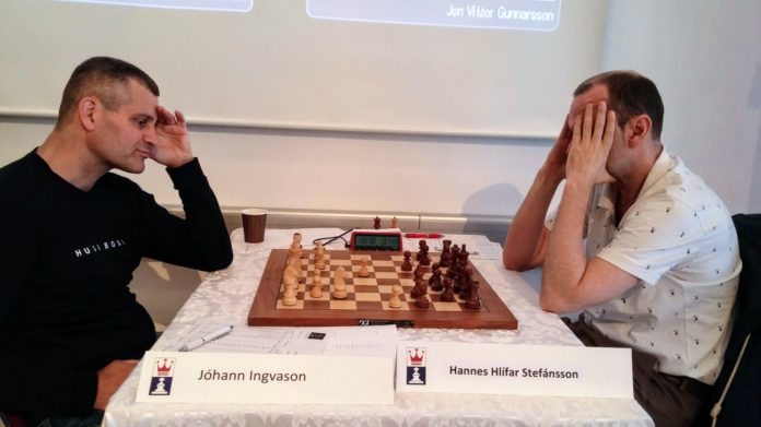Fimm skákmenn eru efstir og jafnir með fullt hús eftir aðra umferð Íslandsmótsins í skák sem fram fór fyrr í dag í Valsheimilinu. Enn er mikið um óvænt úrslit. Birkir Ísak Jóhannsson (1929) sýndi að sigurinn gegn Jóni Viktori Gunnarssyni (2472) í fyrstu umferð var engin tilviljun þegar hann gerði auðvelt jafntefli gegn Vigni Vatnari Stefánssyni (2284) með svörtu. Jóhann Ingvason (2164) átti þó úrslit dagsins er hann gerði jafntefli við tólffalda Íslandsmeistarann, Hannes Hlífar Stefánsson (2541), fyrrum skákkennara sinn. Haraldur Baldursson (1981) gerði jafntefli við bandaríska alþjóðlega meistarann Justin Sarkar (2297).