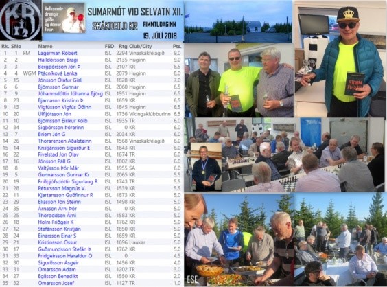 Mikið var um dýrðir þegar skákhátíð KR og sumarmótið við Selvatn á Nesjavallaleið fór fram í miklu blíðviðri við fjallavatnið fagurblátt í gær. Góð þátttaka var að venju þó einhver forföll yrðu á síðustu stundu eins og gengur. Keppendur voru á öllum aldri og nokkrar landsliðskonur í skák krydduðu mótið með þátttöku sinni eins og sjá má á mótstöflunni hér að neðan.