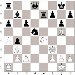 Hárbeittur lokahnykkur. Eftir 25. … Kg8 kemur 26. Bxe7 Dxe7 27. Bxd5+ og svartur tapar manni eða hrók.