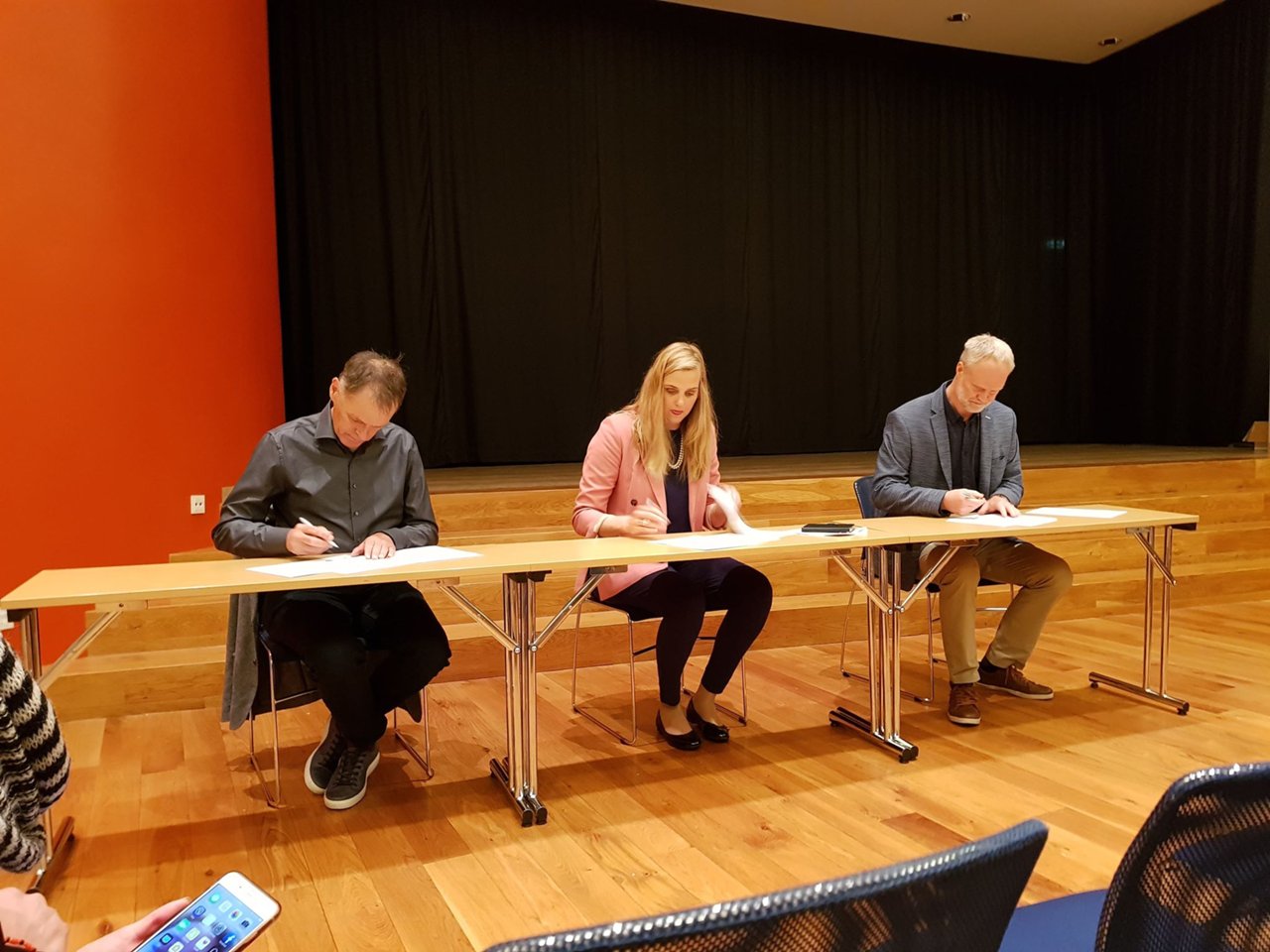 Helgi Ólafsson, Ásthildur Sturludóttir og Áskell Örn Kárason skrifa undir samkomlagið. Mynd: Pia Sigurlína Viinikka