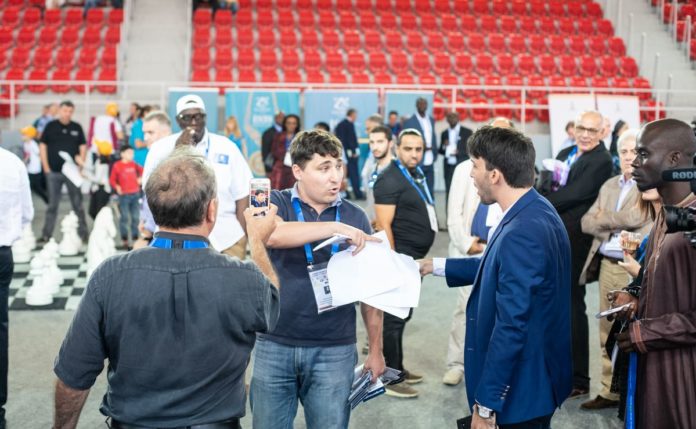 Mikið gengur á fyrir framan og bak við tjöldin á Ólympíuskákmótinu en forsetakosningar FIDE fara fram á miðvikudaginn. Í gær kom úrskurður siðanefndar FIDE (Ethics commission) um Serbíu en forseti skáksambandsins var sakaður um að hafa þegið mútur en sambandið fékk €40.000 frá rússnesku fyrirtæki Í framhaldinu var skipt um FIDE-fulltrúa fyrir Serbíu, þ.e. forsetinn sjálfur varð fulltrúi á kostnað annars, sem er í stuðningsliði Makros.