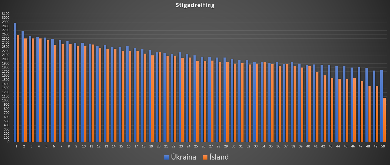 Teflt var á 50 borðum í hraðskákinni sem er mesti fjöldi sem lið Íslands hefur sent til leiks í keppninni. Lið Úkraínu taldi þó öllu fleiri keppendur en alls voru 30 manns á varamannabekknum þeim megin.