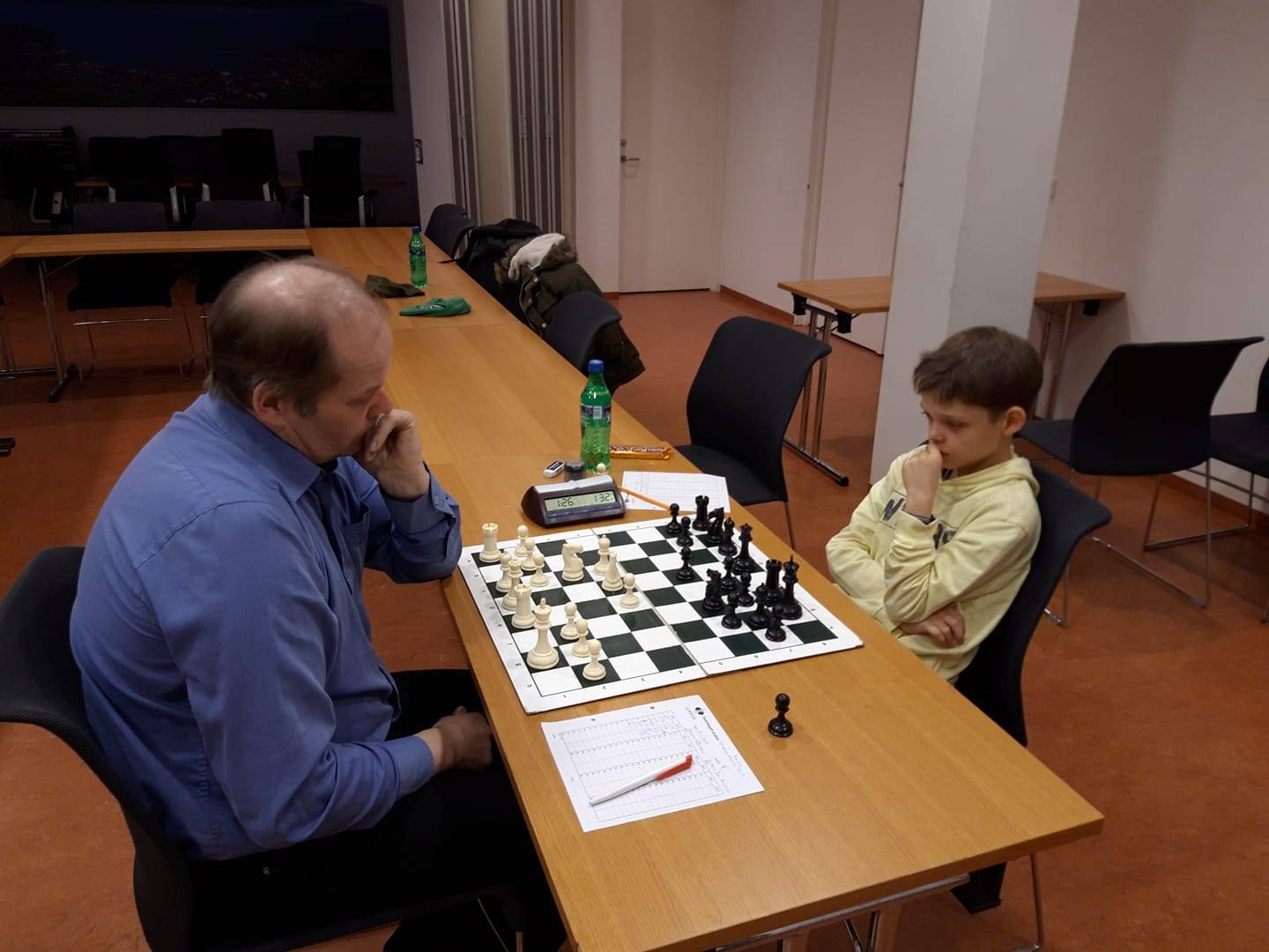 Smári Sigurðsson og hinn ungi og stórefnilegi sonur hans Kristján Ingi Smárason, eru efstir og jafnir með 3,5 vinninga á Skákþingi Hugins á Húsavík sem nú stendur fyrir. Hermann Aðalsteinsson og Rúnar Ísleifsson koma næstir með 3 vinninga hvor, þegar 5 skákum er ólokið í mótinu. Mótið má skoða hér á chess-results