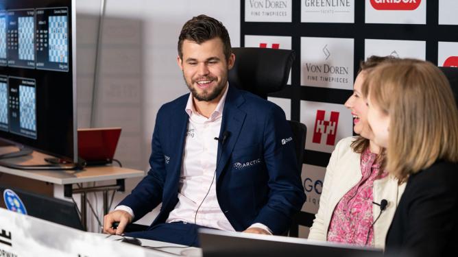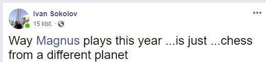 Grand Chess Tour hélt áfram í gær í Zagrab í Króatíu. Þar tefla níu af tíu stigahæstu skákmenn heims með Magnús Carlsen fremstan í flokki. Magnús lætur ekki norsk skákstjórnmál trufla einbeitinguna því að ruslaði Anish Giri upp með svörtu í gær og það í aðeins 23 leikjum. Yfirburðir hans virðast vera miklir. Ivan Sokolov lét eftir sér hafa.