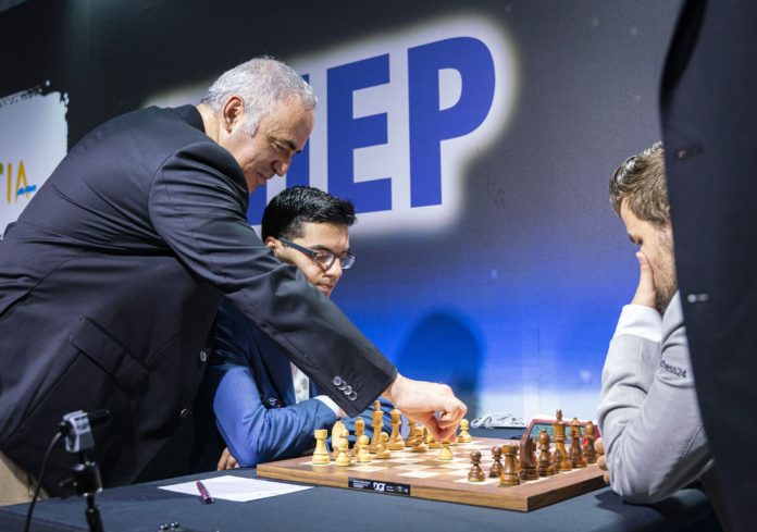 Garry Kasparov lék fyrsta leikinn fyrir Anish Giri. Mynd: Lennart Ootes.