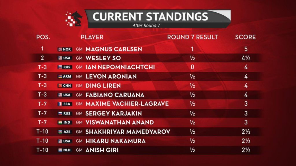Áttunda umferð fer fram í dag. Þá teflir Carlsen við Ding Liren (2805)