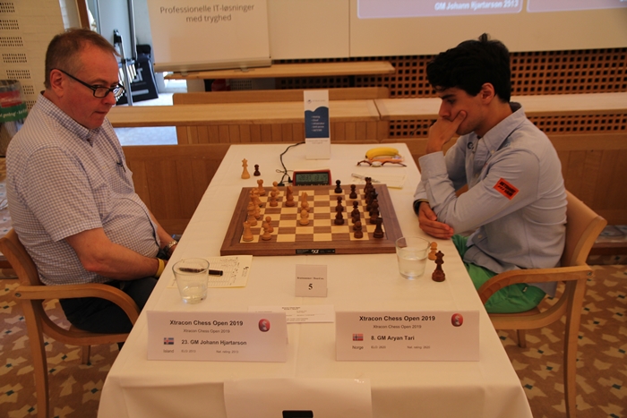 Allir íslensku keppendurnir hafa 5 vinninga að lokinni sjöundu umferð Xtracon-mótsins sem fram fór í gær. Guðmundur vann sænska skákmeistarann Jorgen Eriksson (2211). Hilmir Freyr Heimisson gerði jafntefli við norska alþjóðlega Kristian Stuvik Holm (2469) meistarann en Jóhann Hjartarsson (2513) tapaði fyrir norska stórmeistaranum Aryan Tari (2620). Indverska undrið Praggnanandhaa (2540) er efstur með 6,5 vinninga.
