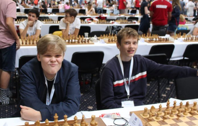 U16 er að mörgu leiti okkar besti flokkar og þar er einnig Stephan nokkur Briem sem tefldi við hlið Vignis í dag. Þeir stúdera mikið saman og beittu þeir í raun báðir útgáfu af „e3 poision“ sem er nýlegt bók sem mælir með ákveðinni aðferðafræði í byrjuninni. Andstæðingur Stephans er líka vinur Vignis og var hann víst eitthvað örlítið fúll eftir skákina þar sem hann grunaði að Vignir hefði hjálpað Stephani við undirbúning…..en ekki hvað??