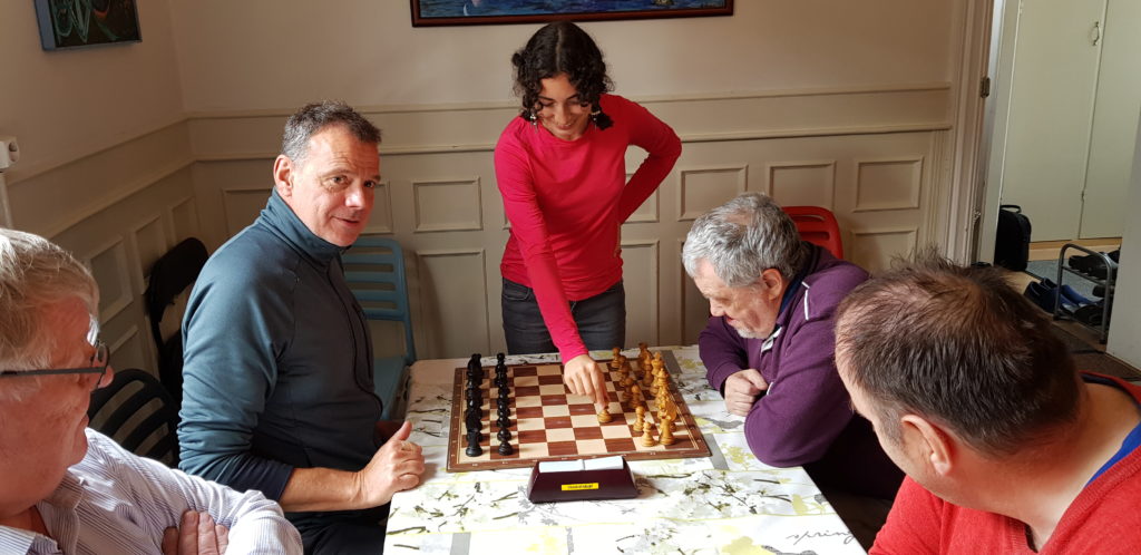 Melina (sjálfboðaliði frá Argentínu) lék fyrsta leikinn fyrir Pétur Jóhannesson gegn Róbert Lagerman.