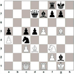 Hann varð að leika 26. … Bg4 þó að hvítur eigi góða stöðu eftir 27. Bxe7 Dxe7 28. Bxc4 með hugmyndinni 28. … dxc4 29. Rg5! o.s.frv.