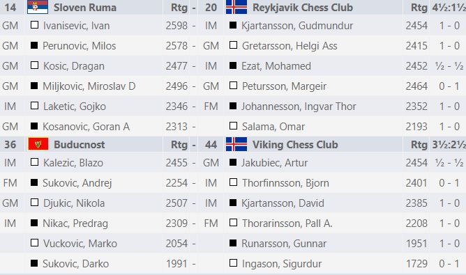 Víkingar töpuðu með minnsta muni, 2½-3½, fyrir heimamönnum í sveitinni Buducnost. Hinir sjóðuheitu Björn Þorfinnsson og Sigurður Ingason unnu sínar skákir. Björn hefur unnið 5 skákir í röð og Sigurður tvær. Artur Jakubiec gerði jafntefli.