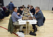 Skákir Skákir Íslandsmóts skákfélaga Eftir Gunnar Björnsson - 1. desember, 2019 1857 0 Halldór Brynjar (t.h.) að tafli á Íslandsmóti skákfélaga. Daði Ómarsson hefur slegið inn skákir fyrstu deildar Íslandsmóts skákfélaga. Þær má finna hér sem PGN [Event "Icelandic Team Championship 2019-20 - 1s"] [Site "Reykjavik (round 1-5) and Self"] [Date "2019.10.03"] [Round "1.1"] [White "Tan, Justin"] [Black "Kulaots, Kaido"] [Result "0-1"] [ECO "B51"] [WhiteElo "2510"] [BlackElo "2542"] [PlyCount "70"] [EventDate "2019.10.03"] [WhiteTeam "Taflfélag Garðabæjar"] [BlackTeam "Skákdeild Fjölnis"] 1. e4 c5 2. Nf3 d6 3. Bb5+ Nd7 4. Ba4 Ngf6 5. O-O a6 6. c4 g6 7. Nc3 Bg7 8. d3 O-O 9. h3 Ne8 10. Bg5 Nc7 11. Qd2 b5 12. Bb3 Nb6 13. Rfe1 a5 14. cxb5 a4 15. Bc4 Be6 16. Bxe6 Nxe6 17. Bh6 Nd4 18. Nxd4 Bxh6 19. Qxh6 cxd4 20. Ne2 e5 21. f4 Nd7 22. Rf1 Rb8 23. Rf3 Rxb5 24. f5 Rxb2 25. Ng3 Kh8 26. fxg6 fxg6 27. Raf1 Rxf3 28. Rxf3 Qe7 29. h4 Rb1+ 30. Rf1 Rxf1+ 31. Nxf1 Kg8 32. Ng3 Nf8 33. h5 Qh4 34. Kf2 Ne6 35. Qc1 Qf4+ 0-1 [Event "Icelandic Team Championship 2019-20 - 1s"] [Site "Reykjavik (round 1-5) and Self"] [Date "2019.10.03"] [Round "1.1"] [White "Thybo, Jesper Sondergaard"] [Black "Haria, Ravi"] [Result "1-0"] [ECO "D37"] [WhiteElo "2550"] [BlackElo "2463"] [PlyCount "69"] [EventDate "2019.10.03"] [WhiteTeam "Skákdeild Fjölnis"] [BlackTeam "Taflfélag Garðabæjar"] 1. d4 e6 2. Nf3 Nf6 3. c4 d5 4. Nc3 a6 5. cxd5 exd5 6. Qb3 h6 7. e4 Nxe4 8. Nxe4 dxe4 9. Bc4 Qe7 10. Ne5 Qb4+ 11. Bd2 Qxb3 12. Bxb3 Be6 13. d5 Nd7 14. dxe6 Nxe5 15. O-O f5 16. Bc3 Bd6 17. Rad1 Rd8 18. Rd5 Ng4 19. Rxf5 Rf8 20. Rxf8+ Kxf8 21. Re1 Bxh2+ 22. Kf1 Bd6 23. Rxe4 Nf6 24. Bxf6 gxf6 25. Rh4 Be5 26. Rxh6 Ke7 27. Rh7+ Kd6 28. g3 b5 29. f4 Bxb2 30. f5 Ba3 31. g4 Kc6 32. g5 fxg5 33. e7 Re8 34. f6 Bxe7 35. Bf7 1-0 [Event "Icelandic Team Championship 2019-20 - 1s"] [Site "Reykjavik (round 1-5) and Self"] [Date "2019.10.03"] [Round "1.1"] [White "Pantzar, Milton"] [Black "Ragnarsson, Dagur"] [Result "1/2-1/2"] [ECO "D80"] [WhiteElo "2376"] [BlackElo "2388"] [PlyCount "52"] [EventDate "2019.10.03"] [WhiteTeam "Taflfélag Garðabæjar"] [BlackTeam "Skákdeild Fjölnis"] 1. d4 Nf6 2. c4 g6 3. Nc3 d5 4. Bg5 Bg7 5. Bxf6 Bxf6 6. cxd5 c6 7. e4 cxd5 8. Bb5+ Bd7 9. Bxd7+ Qxd7 10. Nxd5 Bg7 11. Nf3 Nc6 12. O-O e6 13. Nc3 Nxd4 14. Nxd4 Qxd4 15. Qb3 O-O 16. Rfd1 Qc5 17. Rd7 b6 18. Rad1 Bf6 19. g3 Rfd8 20. Rxd8+ Rxd8 21. Rxd8+ Bxd8 22. Qa4 Bf6 23. Qxa7 Bxc3 24. bxc3 Qxc3 25. Qxb6 Qa1+ 26. Kg2 Qxa2 1/2-1/2 [Event "Icelandic Team Championship 2019-20 - 1s"] [Site "Reykjavik (round 1-5) and Self"] [Date "2019.10.03"] [Round "1.1"] [White "Bjornsson, Sigurbjorn"] [Black "Storme, Isak"] [Result "1-0"] [ECO "C11"] [WhiteElo "2325"] [BlackElo "2244"] [PlyCount "111"] [EventDate "2019.10.03"] [WhiteTeam "Skákdeild Fjölnis"] [BlackTeam "Taflfélag Garðabæjar"] 1. e4 e6 2. d4 d5 3. Nc3 Nf6 4. e5 Nfd7 5. f4 c5 6. Nf3 Nc6 7. Be3 Be7 8. Qd2 O-O 9. dxc5 Qa5 10. Bd3 Nxc5 11. Bxc5 Qxc5 12. h4 f5 13. Ne2 Bd7 14. O-O-O Rac8 15. Kb1 Qa5 16. Ned4 Qb6 17. c3 Nxd4 18. Nxd4 Bc5 19. Be2 Bxd4 20. Qxd4 Rc5 21. Rd2 Bb5 22. b4 Rc6 23. Qxb6 Rxb6 24. Bf3 Rc8 25. Kb2 Rc4 26. g3 Rc7 27. Rc1 Rbc6 28. Bd1 a5 29. a3 Rc8 30. Rd4 b6 31. g4 fxg4 32. Bxg4 g6 33. Rg1 Kf7 34. Rg3 Rc4 35. Rxc4 Bxc4 36. h5 Bf1 37. hxg6+ hxg6 38. Rg1 Bd3 39. Rh1 g5 40. fxg5 Rc4 41. Bh5+ Kg7 42. Rh3 Bf5 43. Re3 Rh4 44. Be8 Rg4 45. Kb3 axb4 46. axb4 Rxg5 47. Ka4 Kf8 48. Bc6 Rg4 49. Kb5 d4 50. cxd4 Rxd4 51. Rb3 Rd3 52. Rxd3 Bxd3+ 53. Kxb6 Kf7 54. Kc7 Kg6 55. Kd6 Kf5 56. b5 1-0 [Event "Icelandic Team Championship 2019-20 - 1s"] [Site "Reykjavik (round 1-5) and Self"] [Date "2019.10.03"] [Round "1.1"] [White "Thorgeirsson, Sverrir"] [Black "Johannesson, Oliver"] [Result "1-0"] [ECO "D12"] [WhiteElo "2304"] [BlackElo "2269"] [PlyCount "85"] [EventDate "2019.10.03"] [WhiteTeam "Taflfélag Garðabæjar"] [BlackTeam "Skákdeild Fjölnis"] 1. d4 d5 2. c4 c6 3. Nf3 Nf6 4. e3 Bf5 5. Nc3 e6 6. Nh4 Bg6 7. Be2 Nbd7 8. O-O Bd6 9. g3 Ne4 10. Nxe4 Bxe4 11. f3 Bg6 12. cxd5 exd5 13. e4 Qb6 14. Nxg6 hxg6 15. Kg2 O-O-O 16. e5 Be7 17. f4 f5 18. Rb1 Nf8 19. Be3 Ne6 20. b4 Kb8 21. Qd2 Rc8 22. Rfc1 a6 23. a4 Rhd8 24. h4 Rh8 25. Qa2 Rhd8 26. Bd3 Rf8 27. Rd1 Rh8 28. Rh1 Rhf8 29. Qd2 Rcd8 30. h5 gxh5 31. Rxh5 g6 32. Rh7 Rde8 33. g4 g5 34. Bxf5 gxf4 35. Bxf4 Nxf4+ 36. Qxf4 Bxb4 37. a5 Qxa5 38. Qd2 c5 39. dxc5 Rxf5 40. Rxb4 Qa3 41. Rbxb7+ Ka8 42. gxf5 Rg8+ 43. Rbg7 1-0 [Event "Icelandic Team Championship 2019-20 - 1s"] [Site "Reykjavik (round 1-5) and Self"] [Date "2019.10.03"] [Round "1.1"] [White "Hardarson, Jon Trausti"] [Black "Petersson, Baldur Teodor"] [Result "0-1"] [ECO "A01"] [WhiteElo "2098"] [BlackElo "2238"] [PlyCount "62"] [EventDate "2019.10.03"] [WhiteTeam "Skákdeild Fjölnis"] [BlackTeam "Taflfélag Garðabæjar"] 1. b3 e5 2. Bb2 Nc6 3. e3 Nf6 4. Bb5 d6 5. d4 exd4 6. exd4 d5 7. Nf3 Bd7 8. O-O Be7 9. c4 O-O 10. Bxc6 Bxc6 11. Ne5 Nd7 12. Nxc6 bxc6 13. Nc3 Nf6 14. Rc1 Rb8 15. Na4 Ne4 16. Qd3 Bd6 17. cxd5 cxd5 18. Nc5 f5 19. Ne6 Qh4 20. g3 Qh3 21. Nxf8 Rxf8 22. Qb5 f4 23. Rfe1 fxg3 24. Qxd5+ Kh8 25. fxg3 Bxg3 26. Re2 Bxh2+ 27. Rxh2 Qe3+ 28. Kh1 Ng3+ 29. Kg2 Rf2+ 30. Kh3 Ne4+ 31. Kg4 Qg3+ 0-1 [Event "Icelandic Team Championship 2019-20 - 1s"] [Site "Reykjavik (round 1-5) and Self"] [Date "2019.10.03"] [Round "1.1"] [White "Thorsteinsdottir, Gudlaug"] [Black "Halldorsson, Jon Arni"] [Result "0-1"] [ECO "D19"] [WhiteElo "1976"] [BlackElo "2083"] [PlyCount "84"] [EventDate "2019.10.03"] [WhiteTeam "Taflfélag Garðabæjar"] [BlackTeam "Skákdeild Fjölnis"] 1. d4 d5 2. c4 c6 3. Nf3 Nf6 4. Nc3 dxc4 5. a4 Bf5 6. e3 e6 7. Bxc4 Bb4 8. O-O Nbd7 9. Qe2 Bg6 10. Rd1 O-O 11. Na2 Be7 12. b4 Nb6 13. Bb3 Nbd5 14. Bd2 Rc8 15. Ne5 Nd7 16. Nxg6 hxg6 17. e4 N5f6 18. Bc3 Qc7 19. Rd3 e5 20. Rg3 exd4 21. Bxd4 Bd6 22. Rxg6 Bxh2+ 23. Kh1 Be5 24. Rd1 Bxd4 25. Rxd4 Qe5 26. Rd3 Rcd8 27. Rdg3 Qh5+ 28. Qxh5 Nxh5 29. R3g5 Kh7 30. Rd6 g6 31. Nc3 f6 32. Ra5 Ne5 33. Rd1 Nd3 34. Kg1 a6 35. Na2 Nhf4 36. Bc2 Ne5 37. Kf1 Rxd1+ 38. Bxd1 Rd8