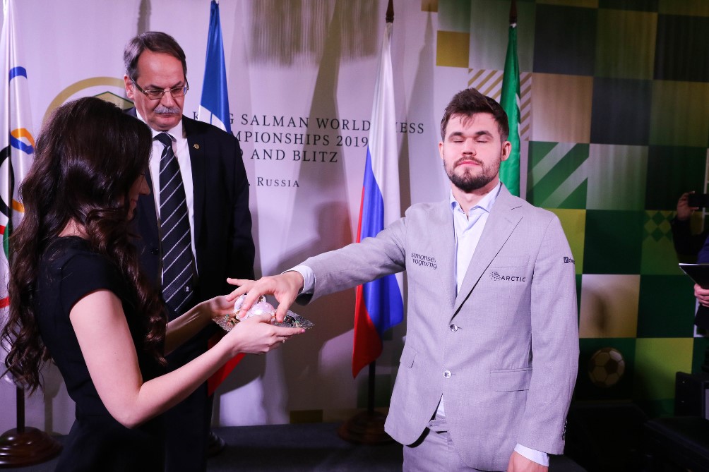 HM í atskák hefst í dag kl. 12 í Moskvu. Mótið fer fram 3 næstu daga og í kjölfarið verður HM í hraðskák. Flestir sterkustu skákmenn heims taka þátt og má þar nefna heimsmeistarinn sjálfan, Magnús Carlsen, og svo Vladimir Kramnik sem lætur reyndar þátttöku í hraðskákinni duga.