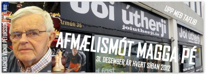 Maggi Pé eins og hann er betur þekktur hefur síðan hann varð áttræður haldið upp á afmæli sitt með pomp og prakt með því að bjóða góðvinum sínum og skákfélögum til skákmóts, fyrst í höfuðstöðvum Jóa Útherja í Ármúla en nú síðustu 3 árin í Ásgarði, félagsheimili FEB, þar sem ÆSIR, skákklúbbur eldri borgara, hefur aðsetur og teflt er grimmt alla þriðjudaga frá kl. 13-17 yfir hausti til vors.