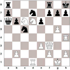 Smá galli á úrvinnslunni en dugar samt. Hvítur gat mátað með 26. Hxh7+! Kxh7 27. Dh5+ Kg8 28. Re7 mát.