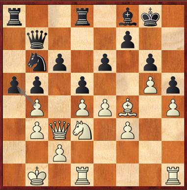 Arnar var nýbúinn að leika 24. – a5. Núna hefði líklega verið vænlegast að reyna að loka drottningarvængnum með 25. Rc5 Bxc5 26. bxc5. En leiðin sem Benedikt velur virðist vera ágæt og það halda skákreiknarnir líka í fyrstu.