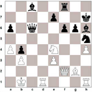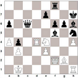 Guðmundur hafði gefið skiptamun á c6, virtist djarft teflt því að drottningin er í skotlínu biskupsins. Getur hvítur leikið 27. Rg5+ með hugmyndinni 27…. fxg5 28. Dxf8? Guðmundur hafði reiknað dæmið rétt því hann á 28…. De6 eða 28…. Dc3 og framhaldið gæti orðið 29. Df2 Dxb3+ 30. Db2 Dxe3 og biskupar svarts njóta sín vel í opinni stöðu. Þess vegna valdi Þröstur réttilega 27. Hd4! sem Guðmundur svaraði hvergi banginn með 27…. Bf5.