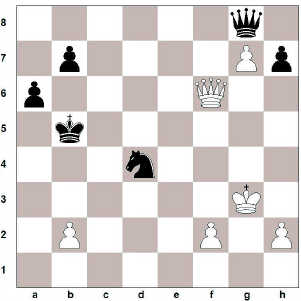 Hann gat varist betur með 36. Kg3. Nú getur svartur unnið með 36. … Rd4+ 37. Kg3 Rf5+ 38. Dxf5 Dxf5 39. g8(D) Dg6+ og peðsendataflið er auðunnið.
