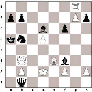 Fyrst nú stígur hvítur feilspor. Vinning var að hafa með 26. Dxg8, t.d. 26. … Rb5 27. He1 o.s.frv. )