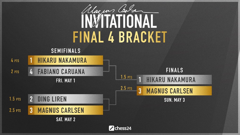 Magnús Carlsen (2881) vann sigur á eigin boðsmóti sem lauk í gær á Chess24-skákþjóninum. Magnús vann sigur á Hikaru Nakamura (2829) í spennandi úrslitaeinvígi, 2½-1½. Carlsen vann fyrstu og þriðju skák en Nakamura þá aðra. Heimsmeistarinn hélt svo jafntefli í lokaskákinni og hlaut að launum $70.000 eða ríflega 10 milljónir króna.