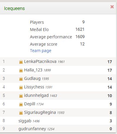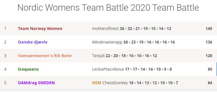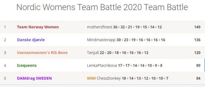 Laugardaginn, 10 maí sl., fór fram á Lichess-skákþjóninum skákkeppni á milli norræna skákkvenna. Að sjálfsögðu mættu íslensku skákkonurnar, undir nafninu Icequeens, til leiks og endðu í fjórða sæti – fyrir ofan þær sænsku.