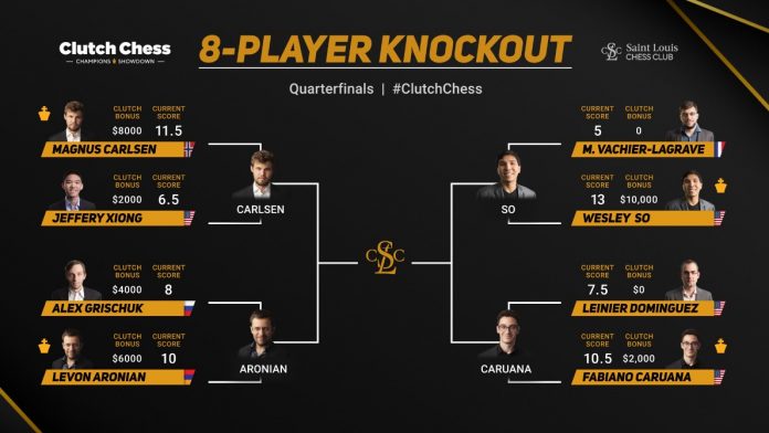 Frídagur er í dag en undanúrslit hefjast á morgun. Í undanúrslitum mætast Carlsen og Aronian annars vegar og Wesley So og Fabiano Caruana hins vegar.