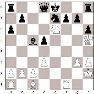 Óþægilegur hnykkur því að 14…. g6 er einfaldlega svarað með 15. De5 og vinnur.