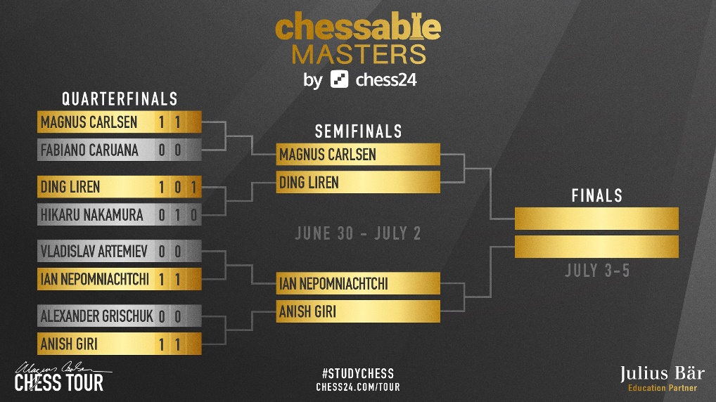 Ding Liren vann Hikaru Nakamura í úrslitaeinvígi 2½-½. Þar með er ljóst hverjir mætast í undanúrslitum. Ding mætir Magnúsi Carlsen. Í hinum undanúrslitunum mætast Anish Giri og Ian Nepomniachtchi.