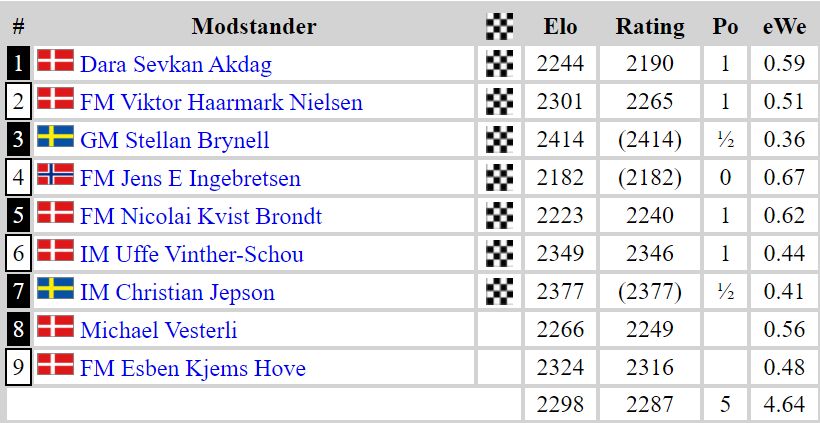 FIDE-meistarinn Hilmir Freyr Heimisson (2309) er efstur á alþjóðlegu móti í Danmörku sem fram fer í Kaupmannahöfn sem lýkur í dag. Hann hefur 5 vinninga að loknum sjö umferðum. Í gær fékk hann hann 1½ vinning gegn tveim alþjóðlegum meisturum (2349-2377)