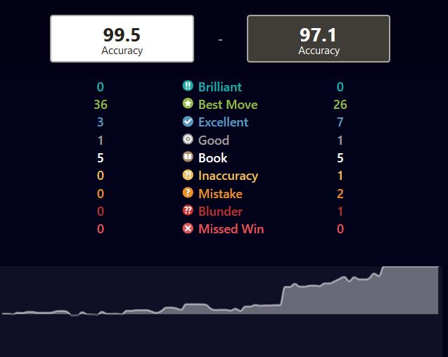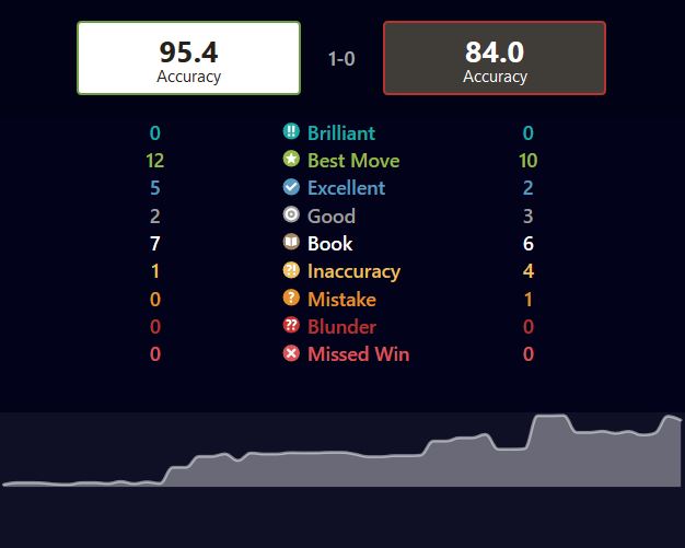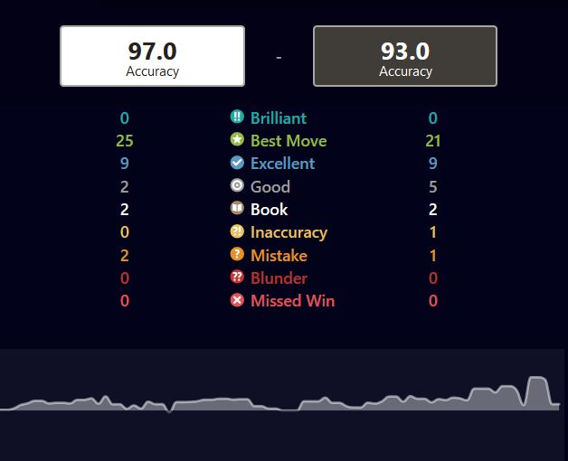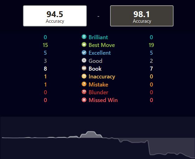 Erfið byrjun fyrir Vignir sem hefur fengið tvo þétta andstæðinga með svörtu í fyrstu umferðunum og þeir hafa báðir verið með CAPS upp á 99.5 skv. reiknum Chess.com! Vignir er skv. þessu CAPS skori búinn að fá tvær best tefldu skáksins á móti sér! Vignir mun vafalítið býta frá sér fljótlega!