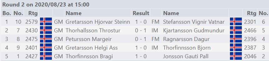 Hjörvar stimplaði sig vel inn í mótið með þéttum sigri á Vigni. Hjörvar tefldi drottningarbragð og tefldi hálfgerða Carlsen skák ef svo mætti segja. Hélt stöðuyfirburðum með biskupaparinu og skipti því svo út líkelgast á réttum tíma fyrir vænlegt endatafl þar sem báðir höfðu hrók og samlita biskupa. Betri staðsetning mannanna tryggði svo sigurinn.