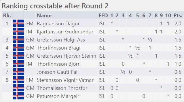 Alþjóðlegi meistarinn Guðmundur Kjartansson og FIDE meistarinn Dagur Ragnarsson hafa farið best af stað en stórmeistararnir fimm á Íslandsmótinu og leiða einir með fullt hús eftir tvær umferðir. Báðir unnu þeir í dag góða sigra með svörtu gegn stórmeistara.