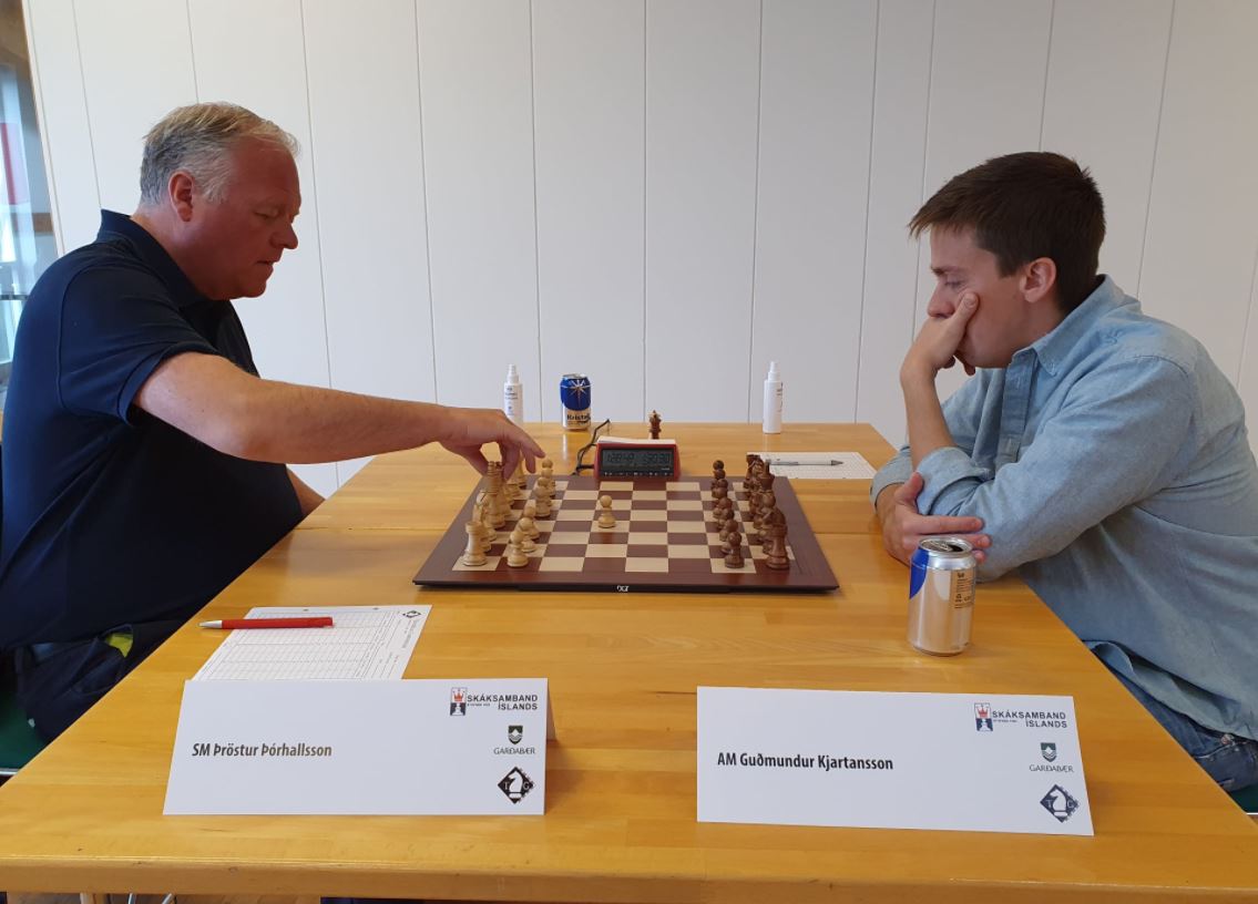 Guðmundur náði yfirhöndinni snemma miðtafl með skemmtilegri brellu þar sem hann kom biskupnum inn fyrir varnir hvíts og þvingaði loks fram vinning á skiptamun. Þröstur náði ekki að finna mótspil og Guðmundur stýrði sigrinum í hús.