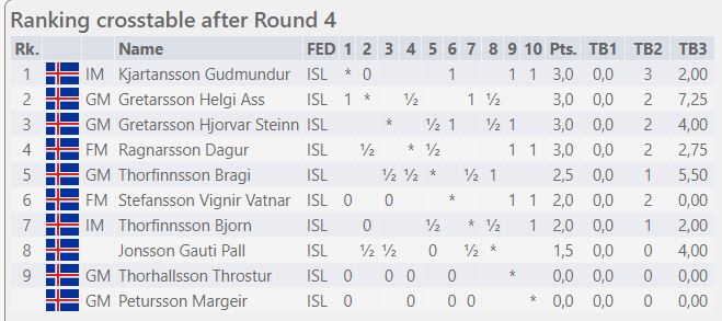 Það stefnir í gríðarlega spennu á Íslandsmótinu en nú eru heilir fjórir skákmenn efstir og jafnir með 3 vinninga eftir 4 umferðir.