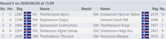 Hver tekur forystu? Enginn af efstu mönnum tefla saman og því margt sem getur gerst. Dagur og Guðmundur fá hvítu mennina og þurfa að sækja. Þröstur og Margeir mætast í baráttu vizkualdurs meistarana.