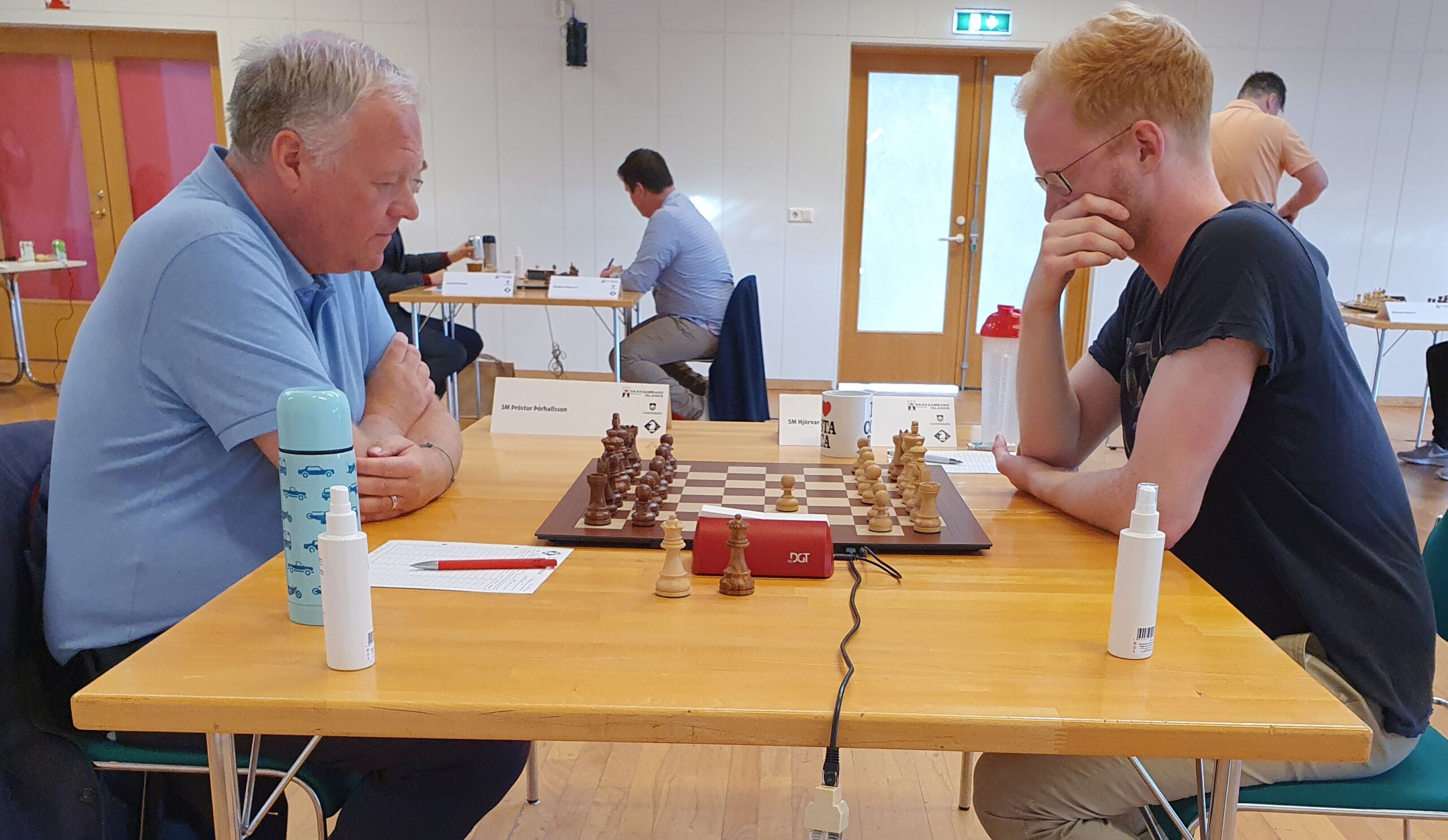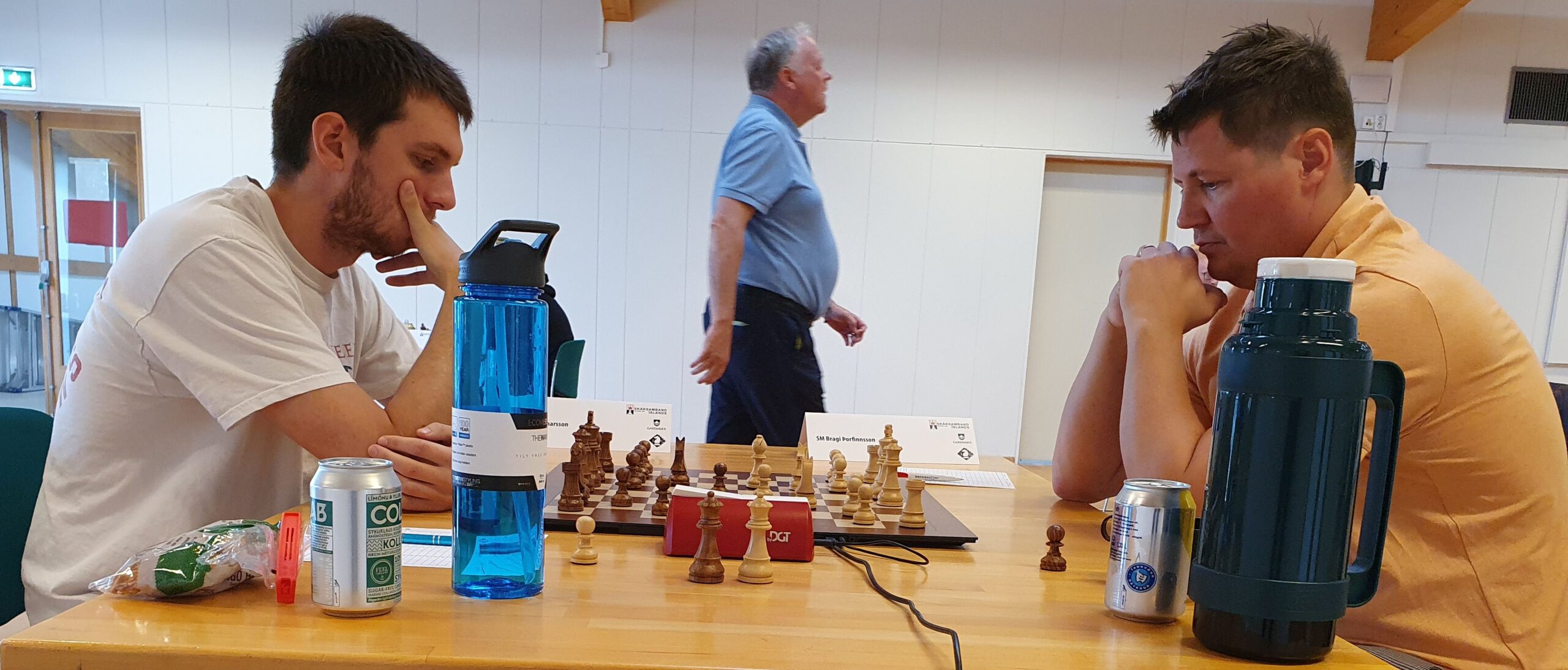 Helgi og Guðmundur hafa verið miklir félagar undanfarin ár, teflt mikið á mótum saman og stúderað. Í dag þurftu þeir hinsvegar að berjast!