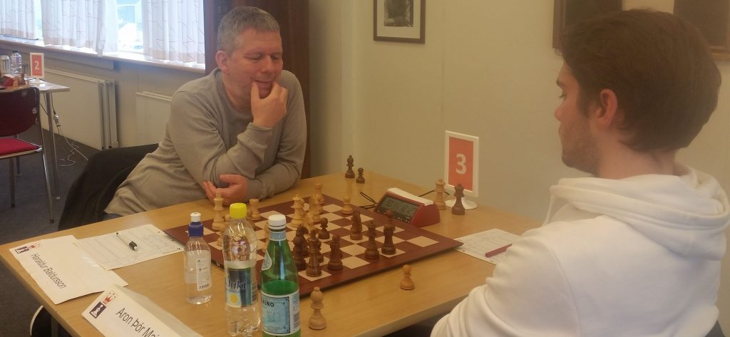 Bord 16: Arnar Freyr Orrason vinnur hrók af Birki Hallmundarsyni. Þá er ekki að spyrja um leikslok. 1-0.
