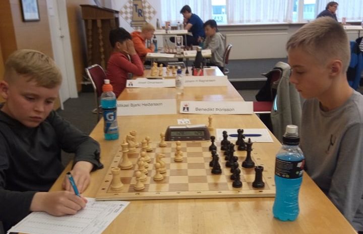 Borð-10: Mikael Bjarki Heiðarsson á frábært mót. Nú vinnur hann Benedikt Þórisson. 1-0.