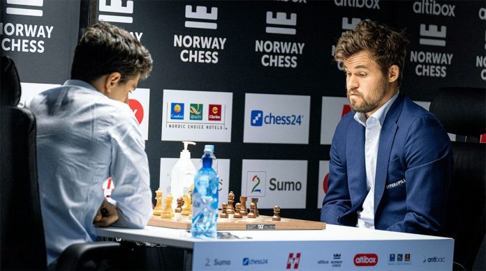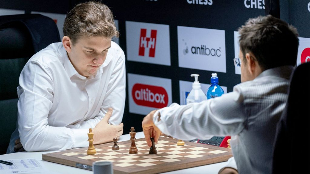 Magnús Carlsen (2863) vann landa sinn Aryan Tari (2633) í þriðju umferð Altibox Norway Chess – mótsins í gær. Heimsmeistarinn lagði mikið á stöðuna – og það gekk upp. Magnús er í þriðja sæti með 6 stig. Levon Aronian (2767) sýndi mikla endataflstækni þegar hann stýrði vinningum í hús gegn Jan-Krzysztof Duda (2757). Ungstirnið Alireza Firouzja (2728) lagði Fabiano Caruana (2828) að velli í bráðabana.