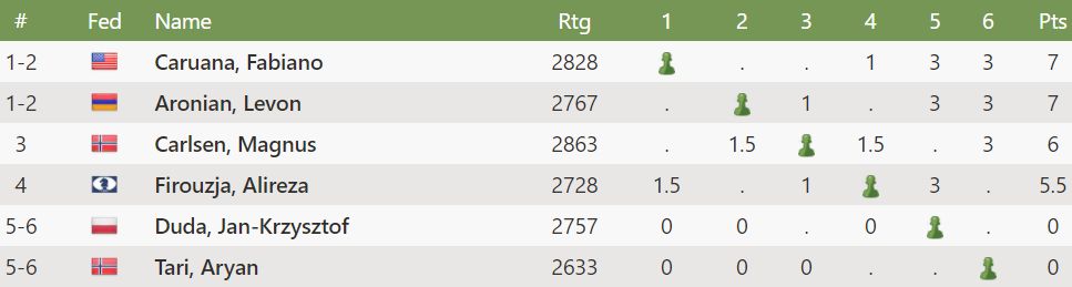 Fjórða umferð fer fram í dag. Þá mætast: Carlsen–Caruana, Aronian–Firouzja, and Tari–Duda.