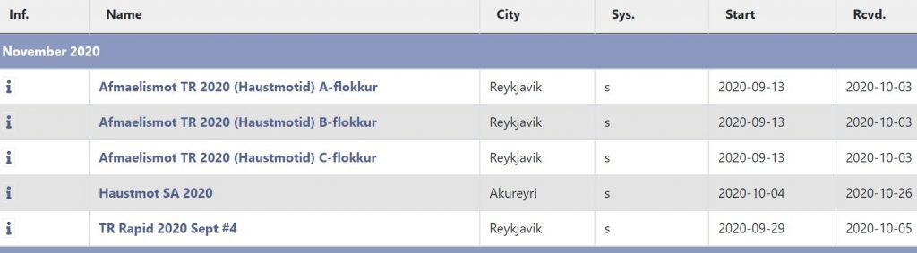 Ný alþjóðleg skákstig eru komin út sem taka gildi í dag, 1. nóvember 2020. 459 íslenskir skákmenn teljast virkir og fjölgar þeim umtalsvert frá síðasta lista þegar þeim voru 354. Ljóst er að FIDE hefur breytt sínum skilgreiningum á óvirkum skákmönnum væntanlega vegna Covid en áður þurfti eina reiknaða skák síðustu 12 mánuði.