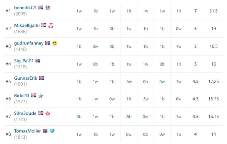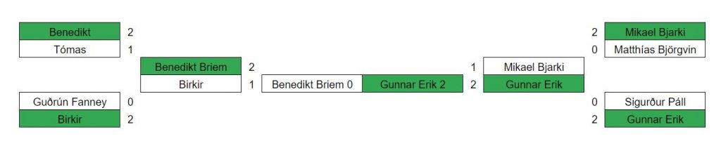 Eftir harða keppni var það Gunnar Erik Guðmundsson sem stóð uppi sem sigurvegari í lokaeinvíginu gegn Benedikt Briem. Gunnar Erik er vel að sigrinum kominn, hefur æft vel í vetur og tekið stöðugum framförum.