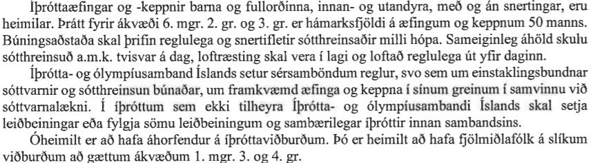 Mótshaldið verður að sjálfsögðu í samræmi við reglugerð um takmörkun á á samkomum vegna farsóttar sem tekur gildi 13. janúar nk. Þar kemur fram um íþróttastarf.