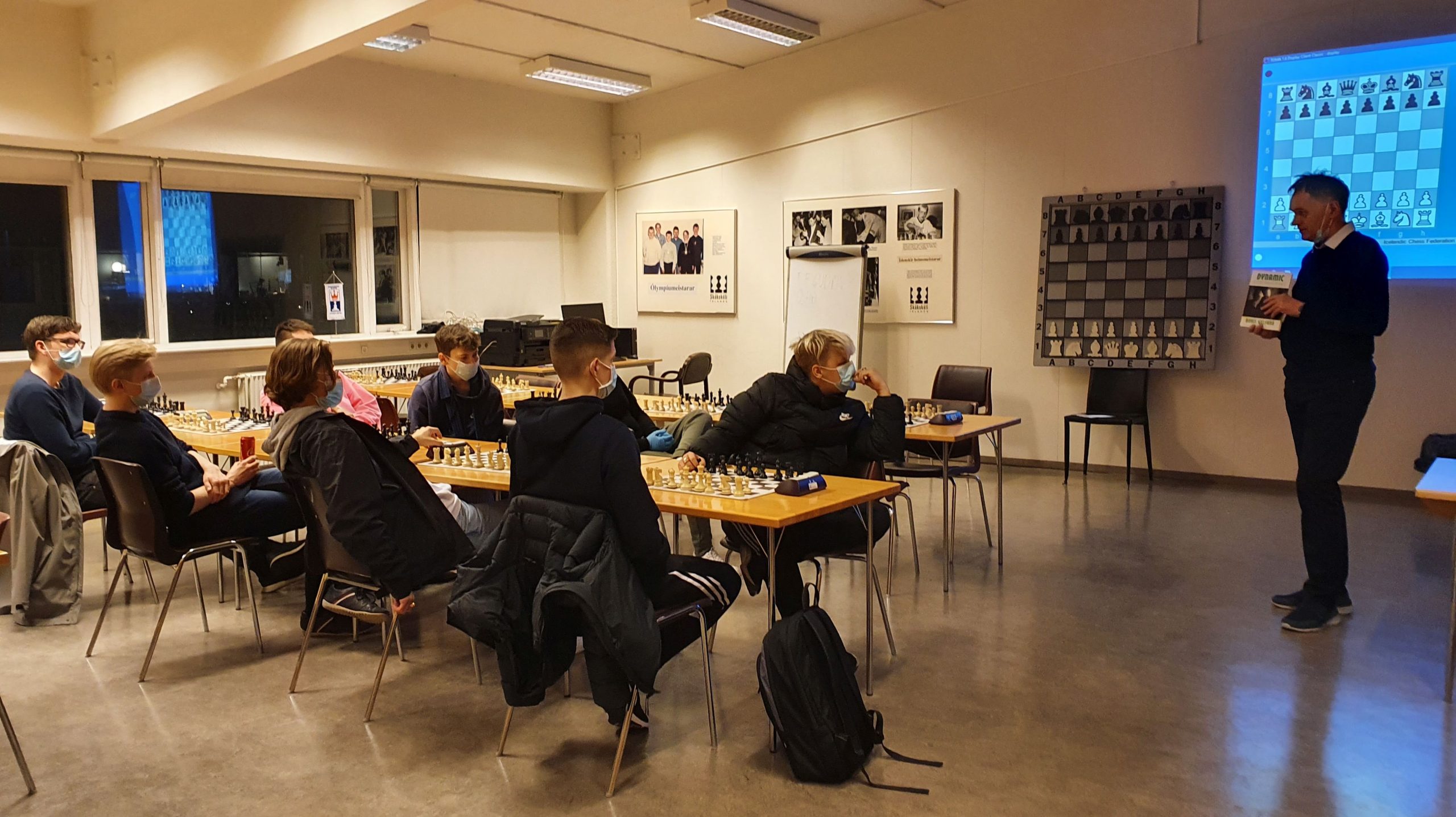 Í desember sl. færðist starfsemin svo aftur að hluta inn í húsnæði Skákskólans í Faxafeni og verður vonandi svo áfram. Á miðvikudaginn komu átta piltar úr hópnum saman: Gauti Páll, Hilmir Freyr, Vignir Vatnar, Stephan Briem, Mikhael Jóhann Karlsson, Pétur Pálmi, Alexander Oliver og Dagur Ragnarsson.