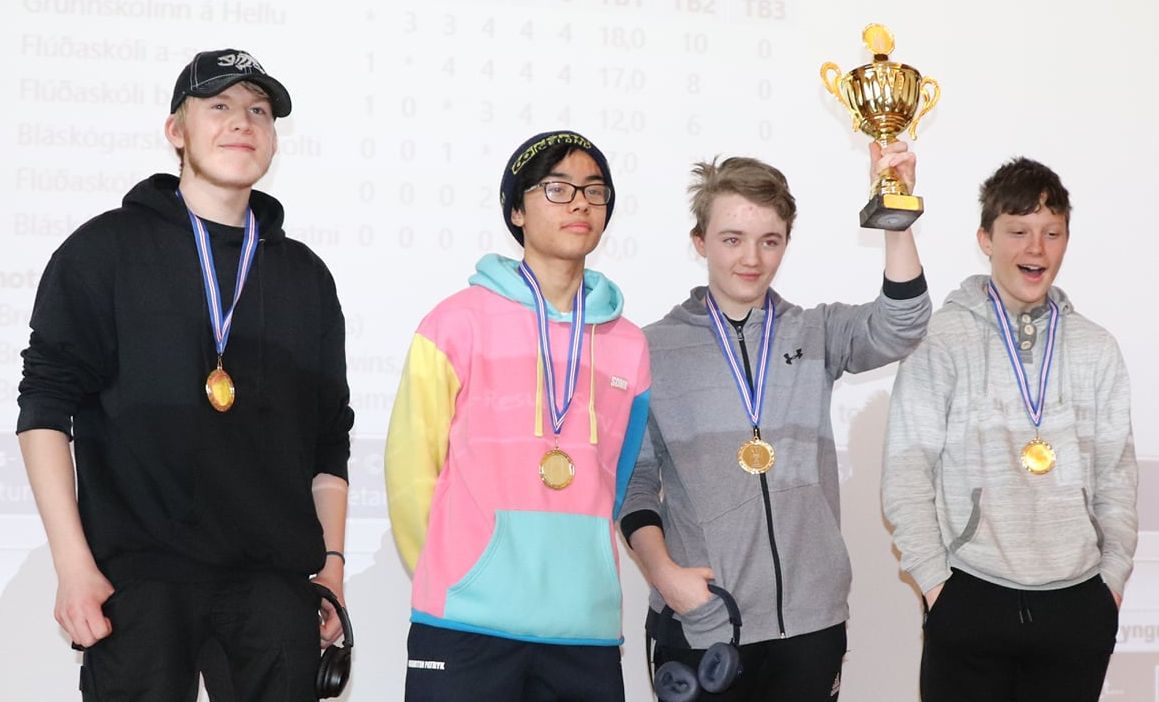 Spennan var þónokkur um verðlaunasæti en svo fór að lokum að a-sveit Flúðaskóla sigraði í yngri flokknum en Grunnskólinn á Hellu í þeim eldri. Aðeins munaði einum vinning á 1. og 2. sæti í báðum flokkum. Flúðaskóli nældi sér í brons í báðum flokkum og náði sér þar með í fjögur af þeim sex verðlaunum sem í boði voru.