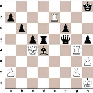 23. e4 Dd7 24. Had1 Had8 25. Rh4 Kh8 26. Rf5 c5 27. d5 Be5 28. Hb1 b6 29. Dc4 Hfe8 30. Kh1 Bd4 31. Hf4