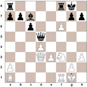 9. Rc3 O-O 10. Be3 Bg4 11. h3 Bh5 12. Dc2 Bg6 13. Db3 Re7 14. O-O c6 15. Bd3 Rf5 16. Dc2 Rxc3 17. bxc3 Rxe3?!