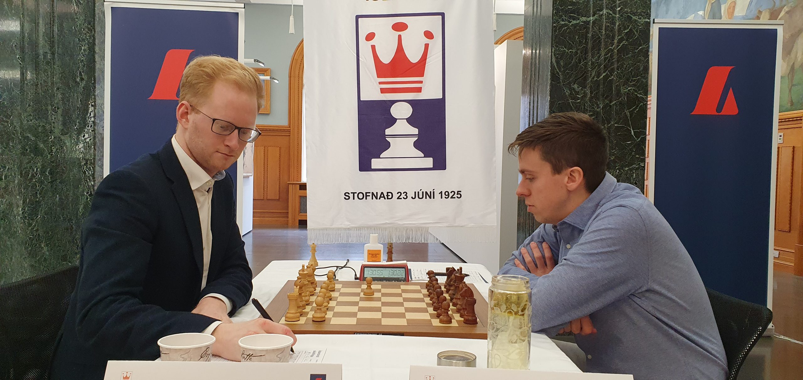 Fyrri skák undanúrslita Íslandsbikarsins í skák fór fram í gær. Eins og hingað til í öllum kappskákum mótsins urðu hrein úrslit. Stigahæsti skákmaður landsins, Hjörvar Steinn Grétarsson, lagði Íslandsmeistarann, Guðmund Kjartansson, að velli á sannfærandi hátt eftir snarpa sóknarskák.