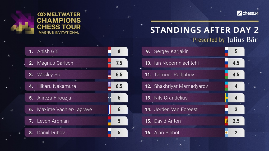 Á laugardaginn hófst undankeppni Boðsmóts Magnúsar Carlsen. Sextán skákmenn taka þátt og komast efstu átta í úrslitakeppni sem byrjar á morgun. Eftir 10 umferðir er Anish Giri eftur með 8 vinninga. MC sjálfur er annar með 7½ vinning. Baráttan er hörð um að enda á topp átta. Lokaátök undankeppninnar, þar sem tefldar verða fimm síðustu umferðirnar, hefjast kl. 16 í dag.