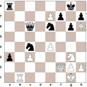 Hannes átti vinningsstöðu en uggði ekki að sér þegar hann lék a-peðinu fram í 28 leik. Hvítur verður að hafa hraðann á og 31. Rh5! blasir við – og vinnur strax. Eftir 31. … gxh5 kemur 32. Dg3+ Kh8 33. Hb8+. En Bragi valdi að leika 31. Df6 og tapaði eftir 37 leiki.